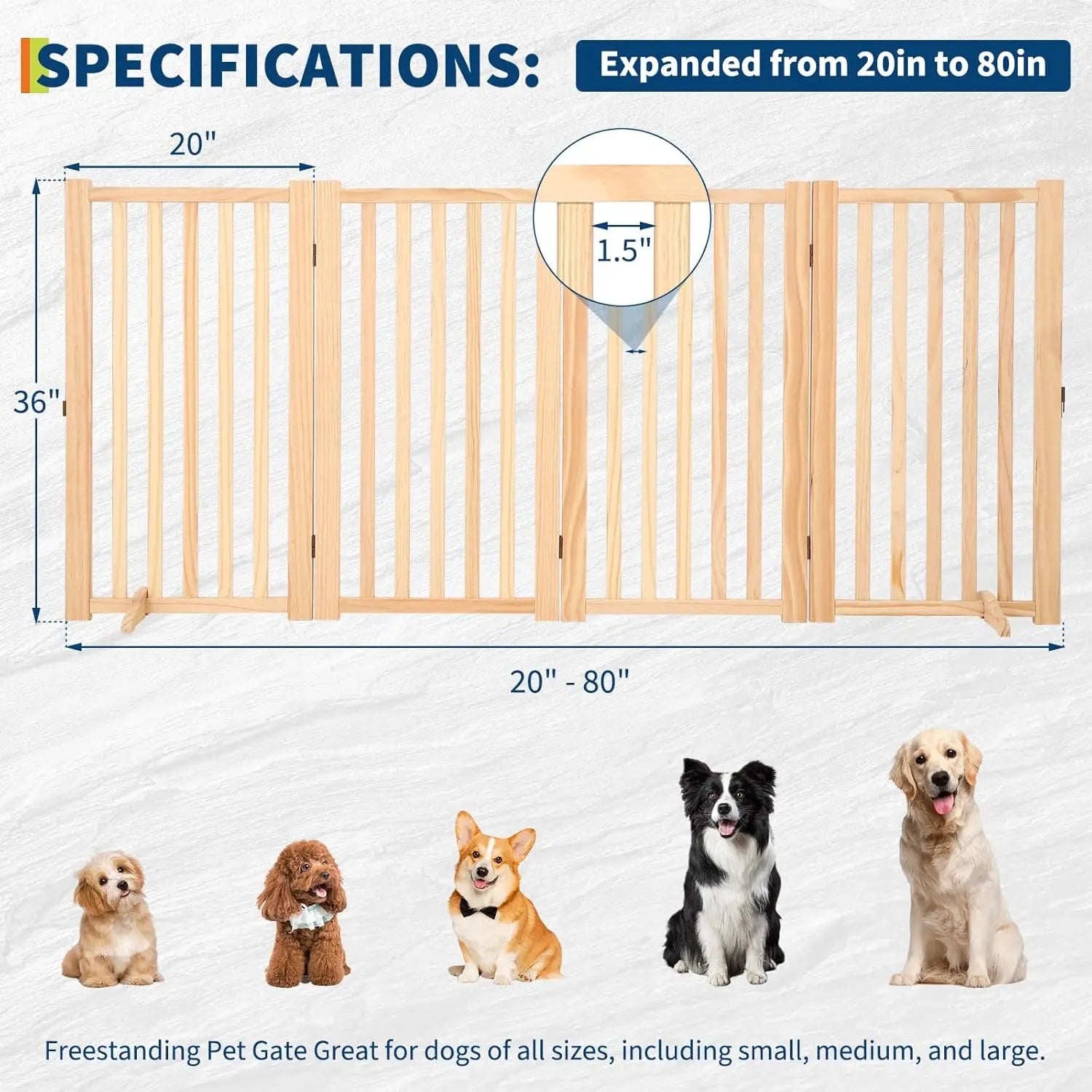 【Wooden Freestanding Dog Door】Our Indoor Freestanding Dog Door Is Made Of Pure Natural Pine Solid Wood Material, No Paint, No Barbs, Providing A Healthy And Comfortable Environment For Your Family And Pets. Use It To Block Doorways, Gaps, Stairs, Etc. To Ensure The Safety Of Your Pets.